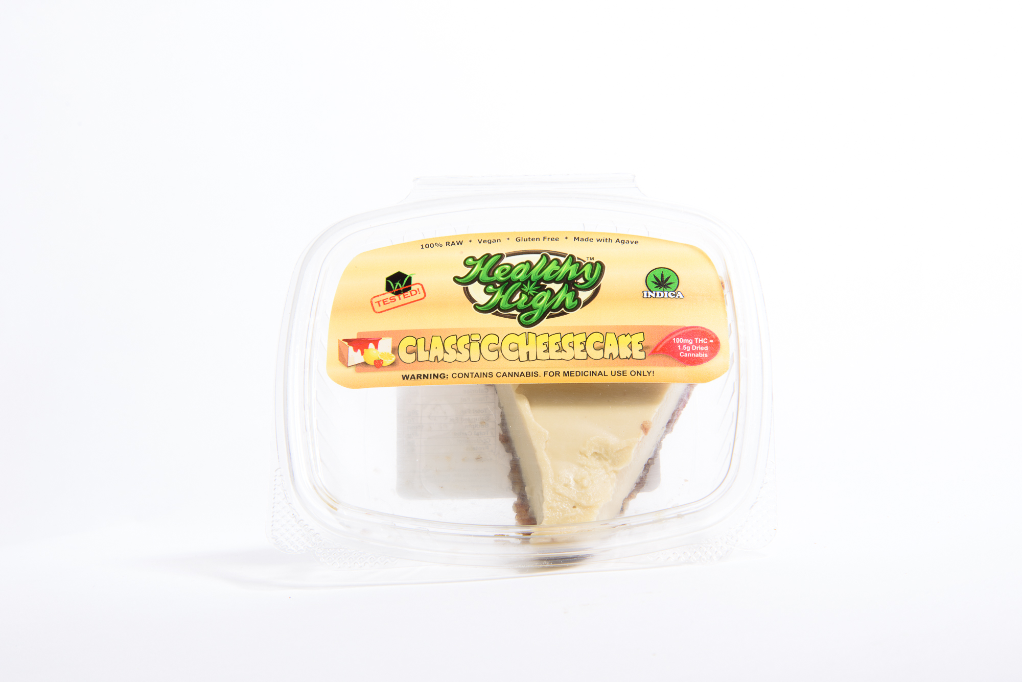 - Overall: This cheesecake is a MUST TRY! We know there are a lot of vegans out there so this edible is a great option for you! If you have celiac disease, you can also eat this edible as it is gluten free! We are grateful Healthy High has made an edible for those with dietary restrictions. The package says the cheesecake is 100 mg THC but we only ate half and felt extremely medicated so beware, this edible may be stronger than 100 mg! New users start with a few small bites and wait to see how you feel. Experienced users may want 1/4 to a full slice.