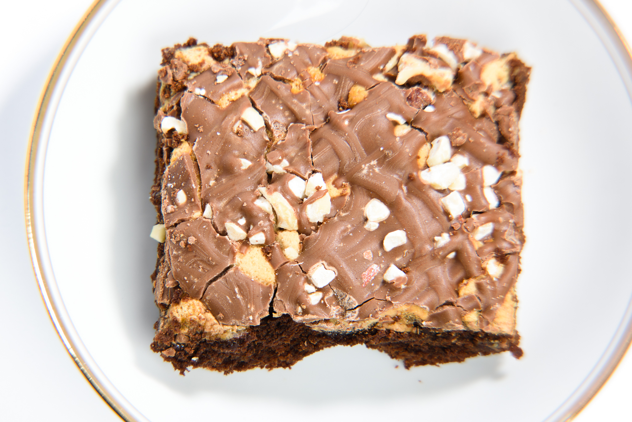 - Taste: This fudge brownie with a marshmallow, chocolate, and nut topping is adventurous! Each bite is extremely flavorful. Considering the strength of the brownie, we expected it to have more cannabis taste than it did! This brownie is soooo delicious it can be easy to eat too much!