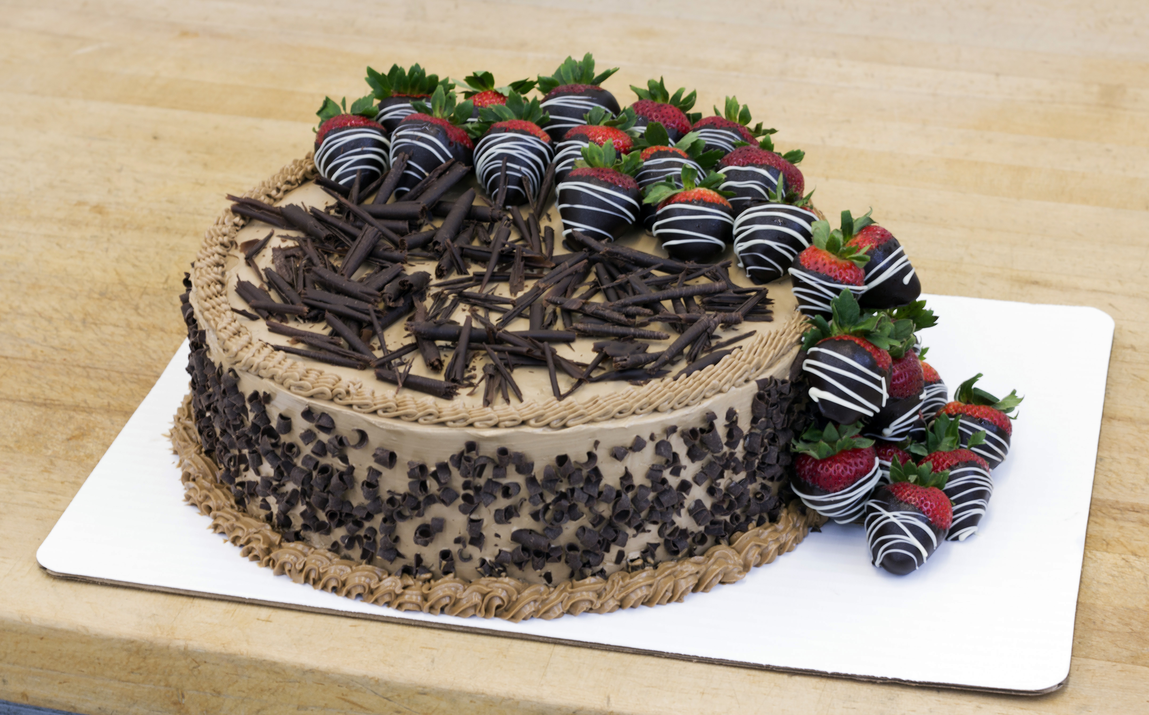 - The Decoration: Over 20 strawberries were dipped in a blend of Kiva BlackBerry Dark Chocolate and non-medicated chocolate. The blend was needed to create the right consistency for the chocolate to hold (The Muffin Man is a pro!). The strawberries were then drizzled with white chocolate. The strawberries were beautifully displayed on top of the cake and onto the side in a waterfall manner. The taste was phenomenal! The top and sides of the cake were covered with flakes of more Kiva Chocolate. We appreciate The Muffin Man using our favorite chocolate bar!