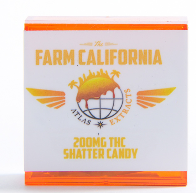 - Overall: Farm Caramels did a great job at making this candy look identical to shatter. While this edible is catchy and clever in appearance, the cannabis taste is too strong for us to enjoy consuming it. If you like to taste weed in your edibles, then you’ll love this shatter candy! The candy is 200 mg of THC and hits hard! New users should consume just a few pieces, while experienced users will enjoy half to the whole container full.