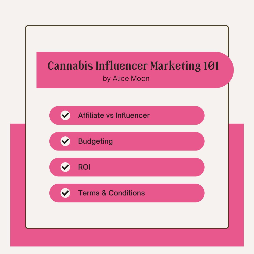 Interested in growing your brand via influencer marketing but don’t know where to start? Alice has the course for you! In Influencer Marketing 101, Alice teaches you how to prepare for an influencer campaign, how to find cannabis influencers, how to launch an influencer marketing campaign, how to measure ROI, and more! Each purchase of this course comes with a 15 minute follow up call where Alice can provide 1:1 advice for any lingering questions you may have regarding influencer marketing. Note: while this course is geared towards those in the cannabis/hemp space, it contains information relevant to any industry!